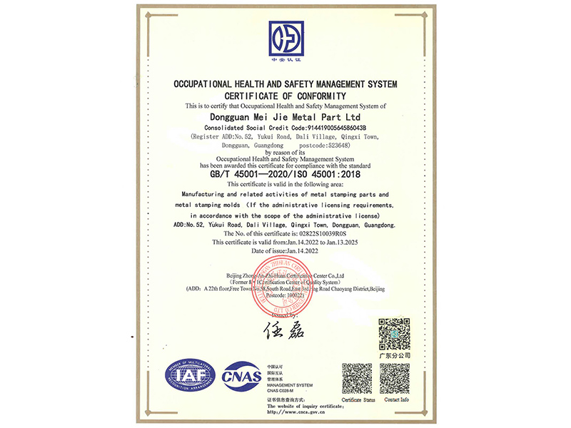 Occupational Health and Safety Management System Certificate