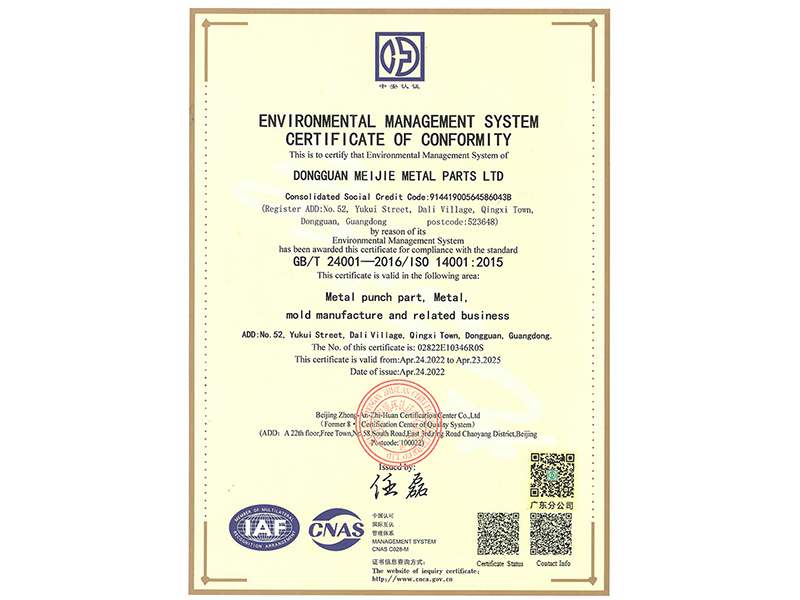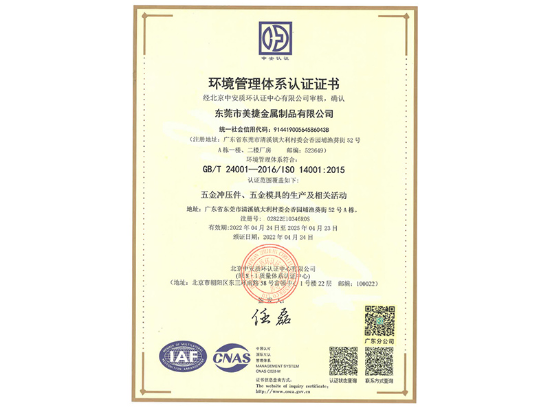 ISO14001 system certificate